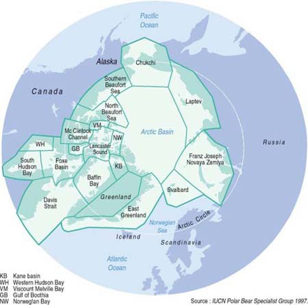 Figure 1. The 19 subpopulations that make up the global polar bear population. Courtesy IUCN Polar Bear Specialist Group