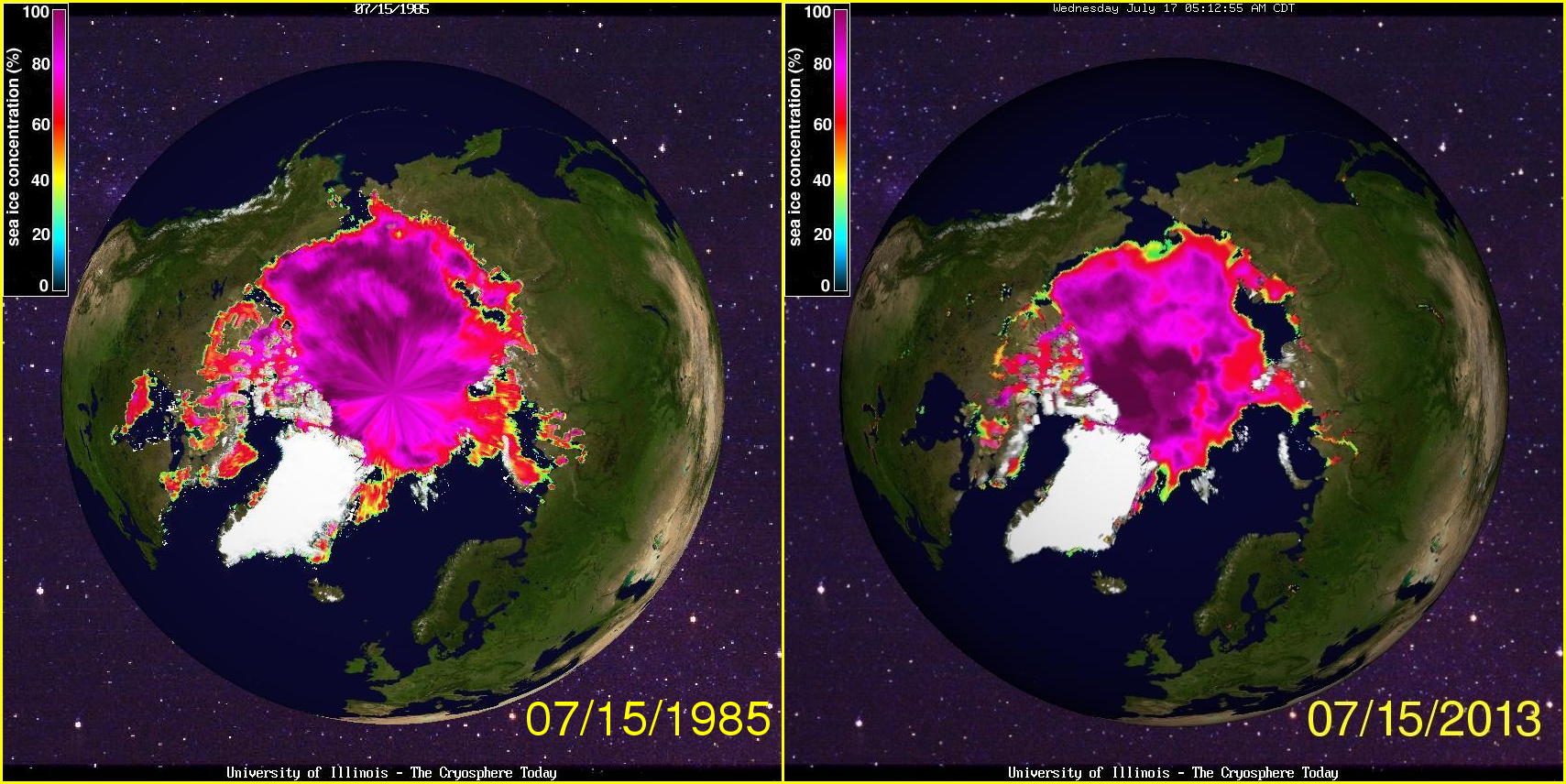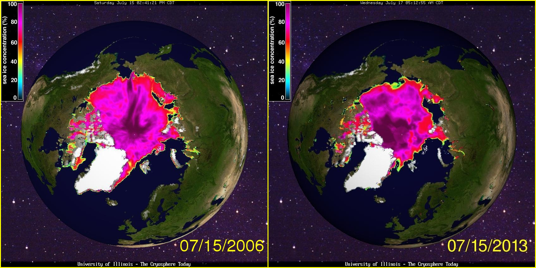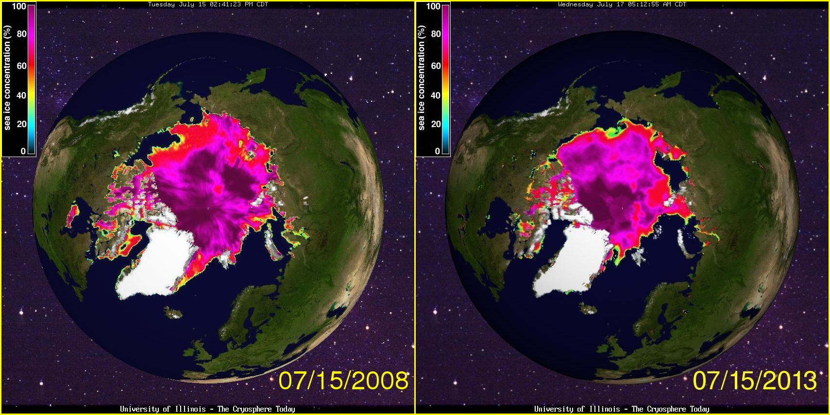 Sea ice maps for 2013 vs. 2006, 1985 and 2008