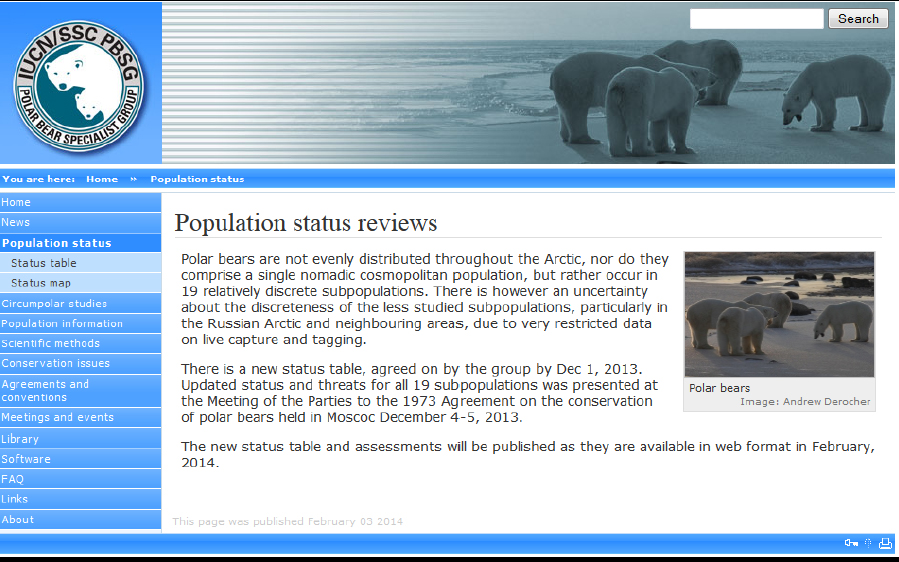 I kept a close watch on the website of the IUCN Polar Bear Specialist Group (PBSG) over the weekend to see if an actual population status update might eventually appear (see my last post).