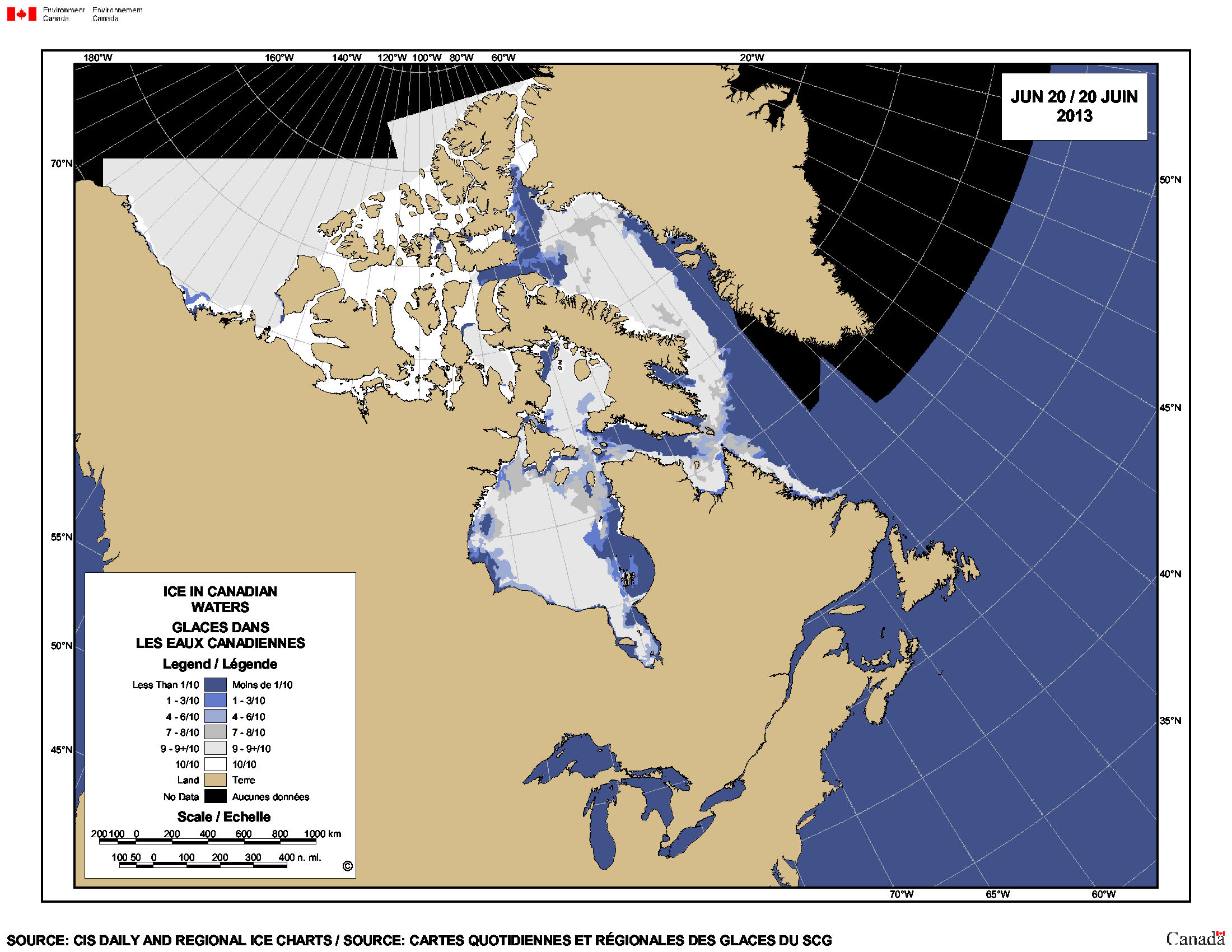 As the earliest date that Western Hudson Bay was reduced to 30% ice coverage between 1991 and 2009 was June 17 (in 1999, see detailed discussion here and Table 1 below), we are well past the point of an early breakup, since well over 50% ice remains today (to my eye, anyway).