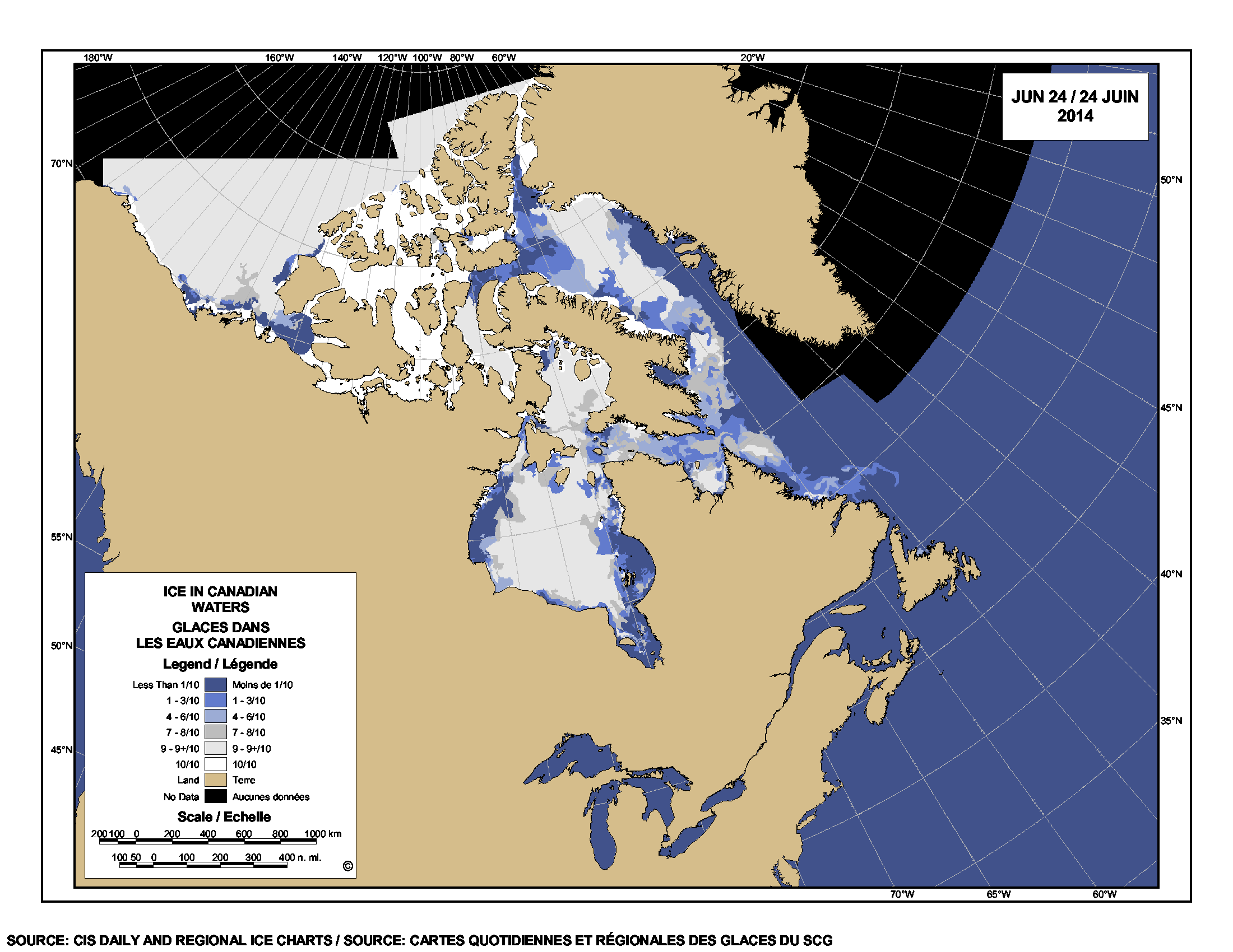 Hudson Bay ice coverage is relatively high again this year, for this date – see the Canadian Ice Service maps below for 2014 compared to 2013 and 2012. Click to enlarge them.