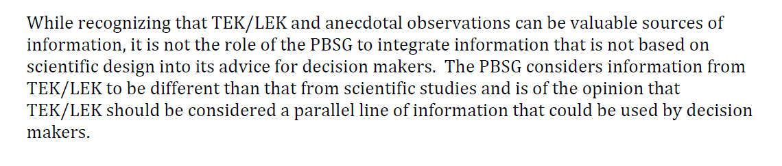 TRADITIONAL ECOLOGICAL KNOWLEDGE (TEK) pdf here, final statement below.