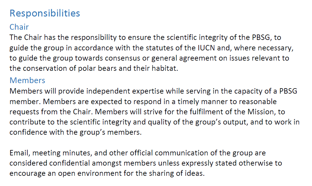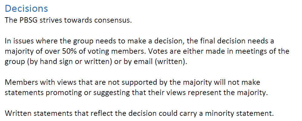 TERMS OF REFERENCE – below are some interesting excerpts from the 2014 PBSG “Terms of Reference“ document (pdf here).