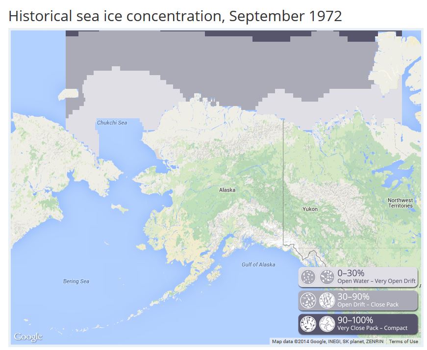 Walruses as polar bear prey and sea ice were on my mind last night and I remembered that we DO have detailed sea ice information for 1978 and 1972 – from the sea ice atlas put together by University of Alaska Fairbanks (UAF), which has ice concentration maps for Alaska going back to 1850 — and for every year up to 2013 (reported previously here).