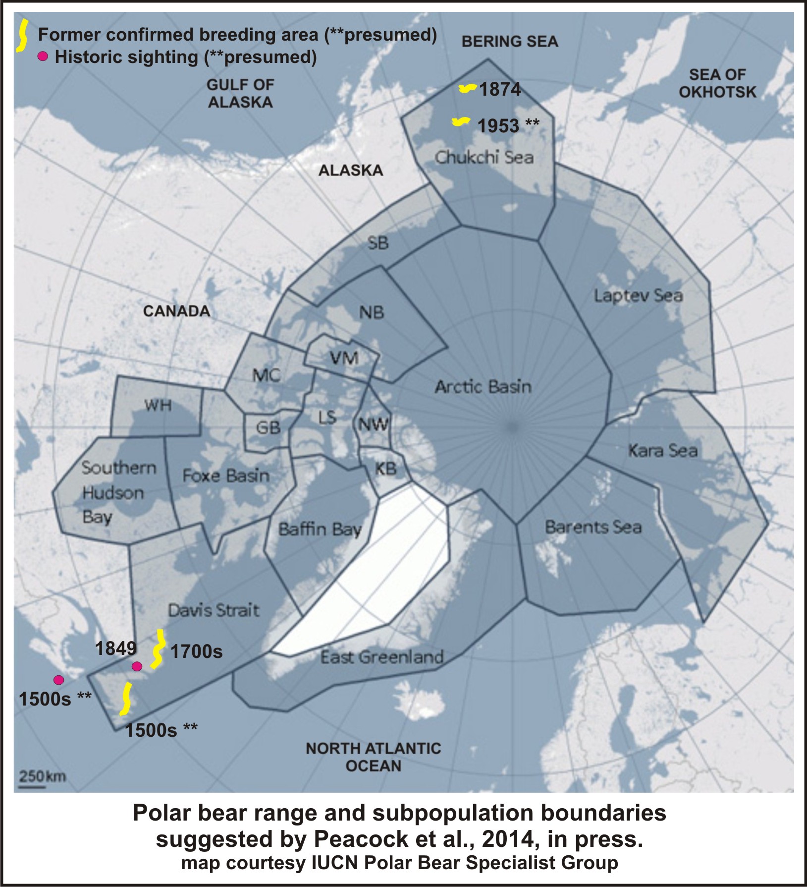 Peacock E, Sonsthagen SA, Obbard ME, Boltunov A, Regehr EV, et al. 2015. Implications of the Circumpolar Genetic Structure of Polar Bears for Their Conservation in a Rapidly Warming Arctic. PLoS ONE 10(1): e112021. doi:10.1371/journal.pone.0112021 Open access: http://www.plosone.org/article/info%3Adoi%2F10.1371%2Fjournal.pone.0112021