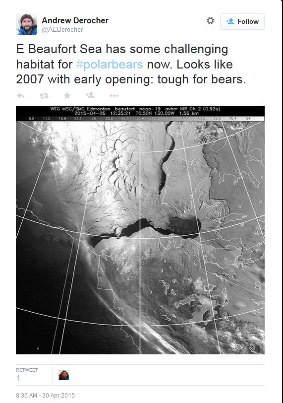 Figure 6. Tweet from polar bear biologist Andrew Derocher, 30 April 2015. Click to enlarge. Original here.
