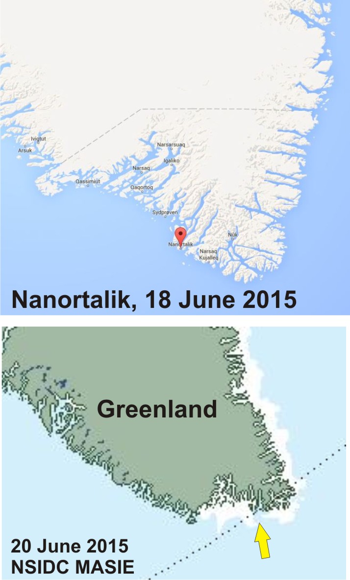 3) Polar bears make a nuisance of themselves in East Greenland, said to be caused by “thinning sea ice” – although, in reality, increasing numbers of bears is just as likely to blame. A “pat-on-the-back-to-WWF” style Arctic Journal story (18 June 2015) of problem bears in Ittoqqortoormiit, a town of 450 on Greenland’s east coast. The World Wildlife Fund, ever eager to advise, is providing recommendations to the townsfolk on how to cope with nuisance bears. It strikes me as yet another chump-change, feel-good effort meant to generate good PR and continue the rhetoric that all polar bear problems are caused by global warming. I say, why isn’t WWF putting up the serious cash required to count polar bears in East Greenland, which has never been done? Are they afraid a count might show that a large, healthy population of polar bears exists in East Greenland, despite some change in sea ice cover?
