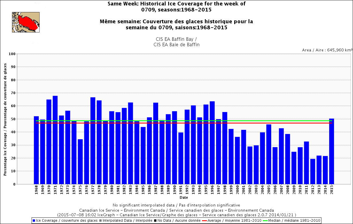 Baffin Bay ice coverage for the week 9 July, 1968-2015 (Fig.4):