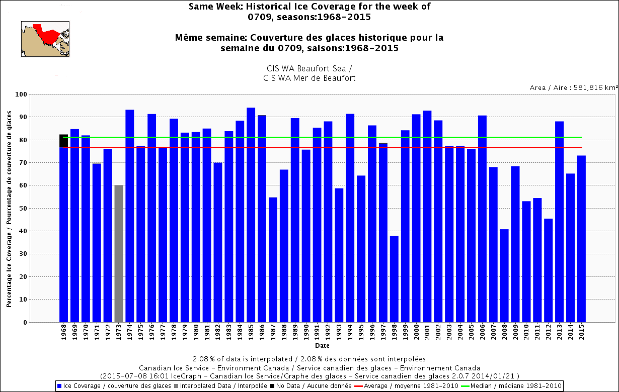 Beaufort Sea ice coverage for the week 9 July, 1968-2015 (Fig.5):