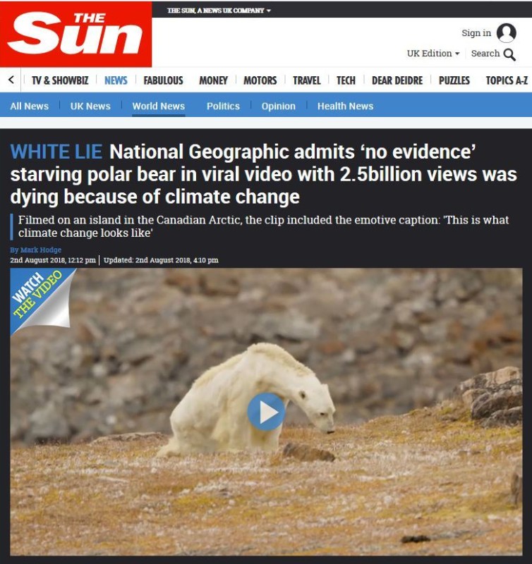 White Lie: Polar bear starvation is virtually never caused by sea ice loss