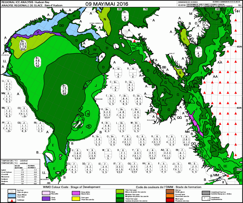 Hudson Bay ice stage of development weekly at 9 May 2016
