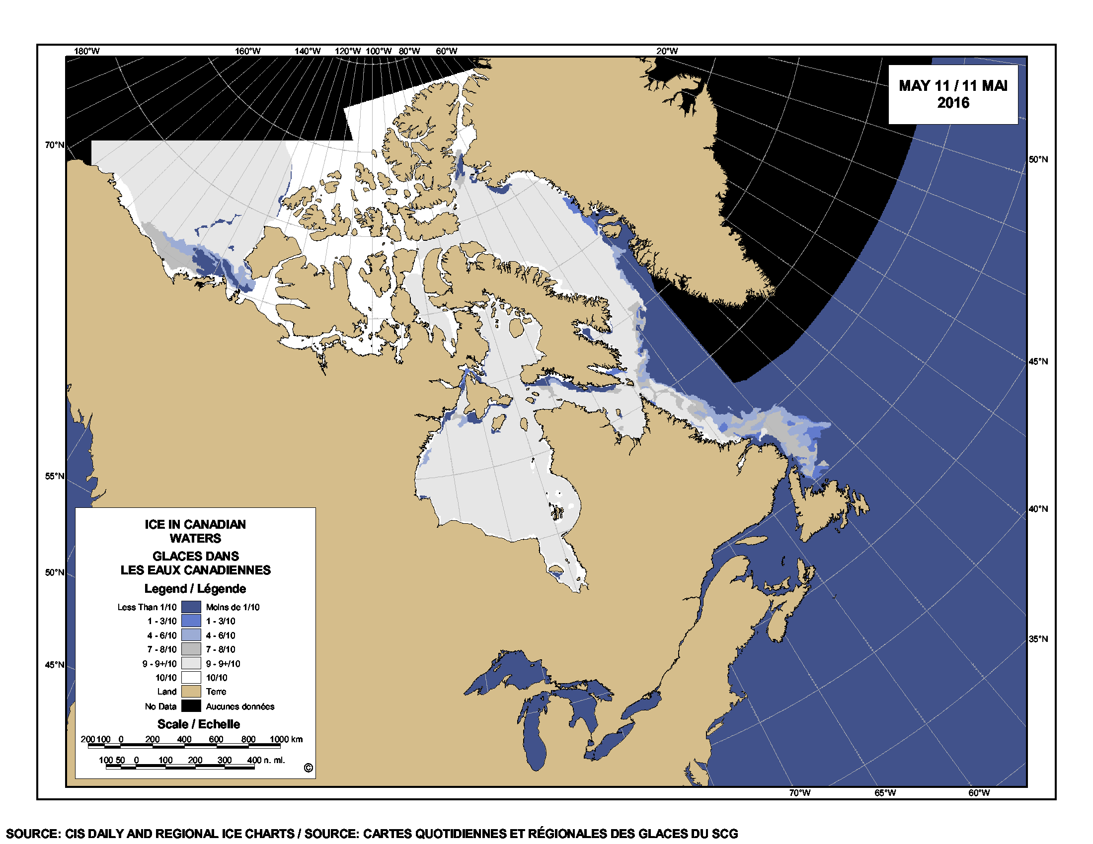 Sea ice extent Canada 2016 May 11 CIS