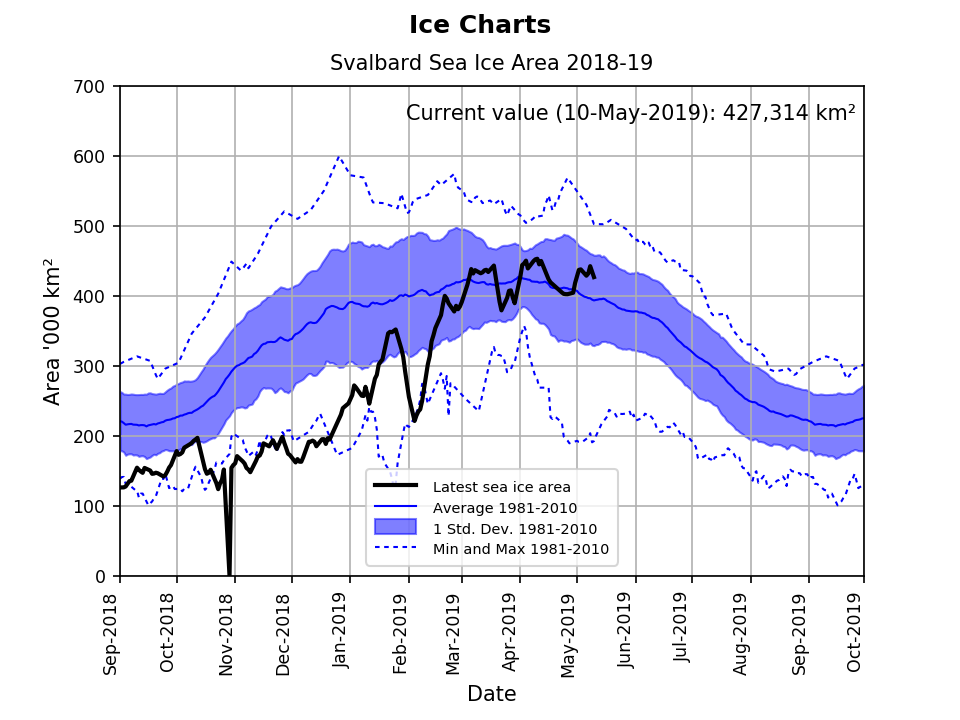 Svalbard ice extent 2019 May 10 graph_NIS