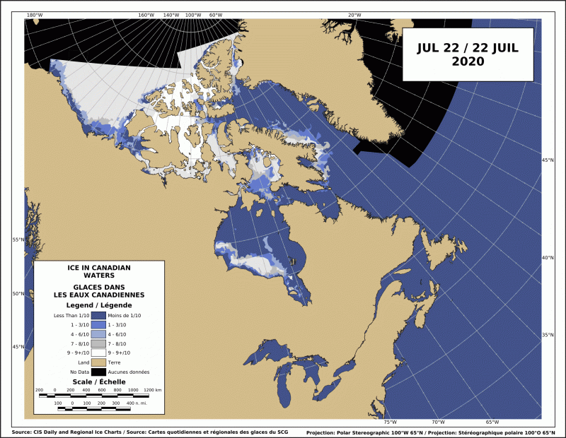 Sea ice Canada 2020 July 22