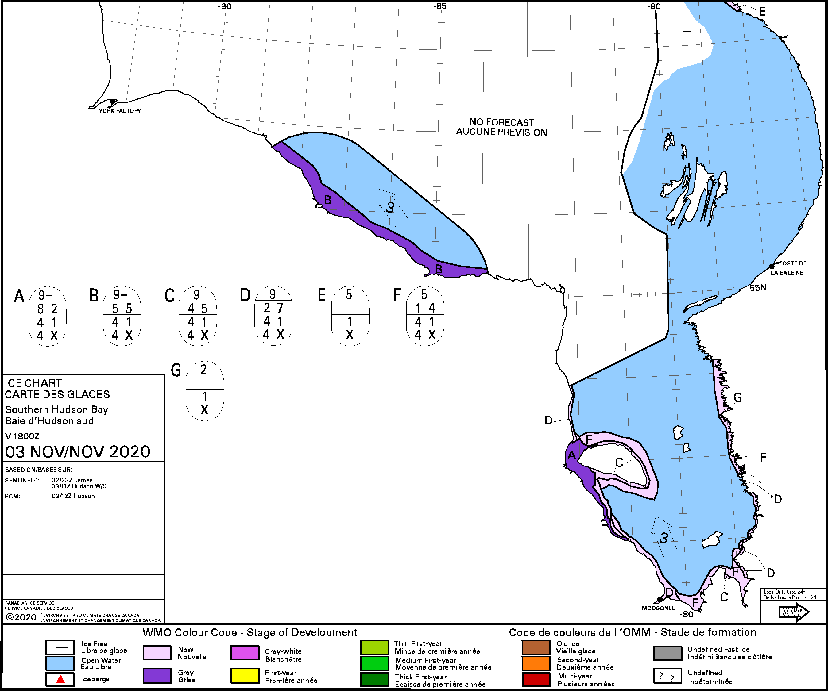 Hudson Bay South daily stage of development 2020 Nov 3_new ice forming