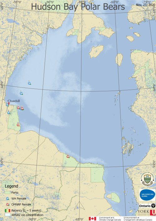 Castro de la Guardia, L., Myers, P.G., Derocher, A.E., Lunn, N.J., Terwisscha van Scheltinga, A.D. 2017. Sea ice cycle in western Hudson Bay, Canada, from a polar bear perspective. Marine Ecology Progress Series 564: 225–233. http://www.int-res.com/abstracts/meps/v564/p225-233/