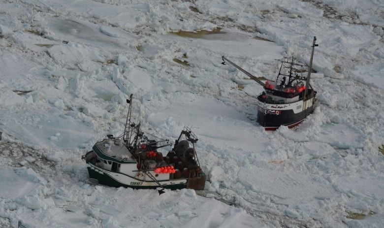 CBC 2018 fishing boats stuck in ice off northern Newfoundland in spring 2017 original