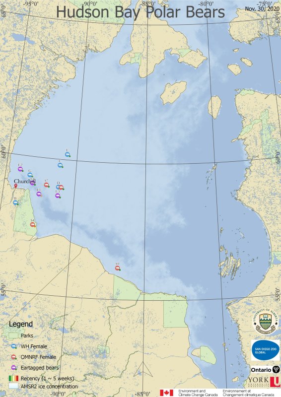 Derocher 2020 WHB tracking map 30 Nov all bears on the ice