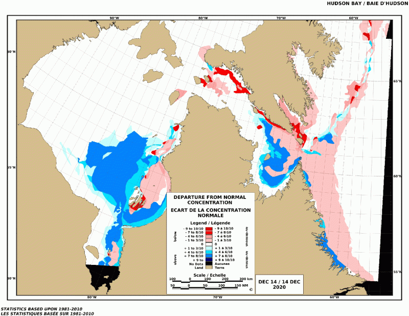 Hudson Bay weekly departure from normal 2020 Dec 14