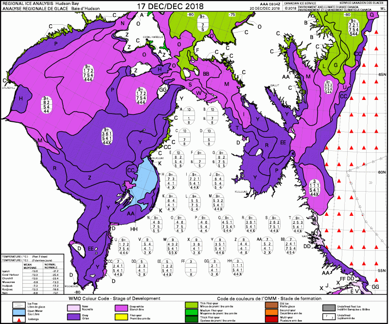 Hudson Bay weekly stage of development 2018 Dec 17