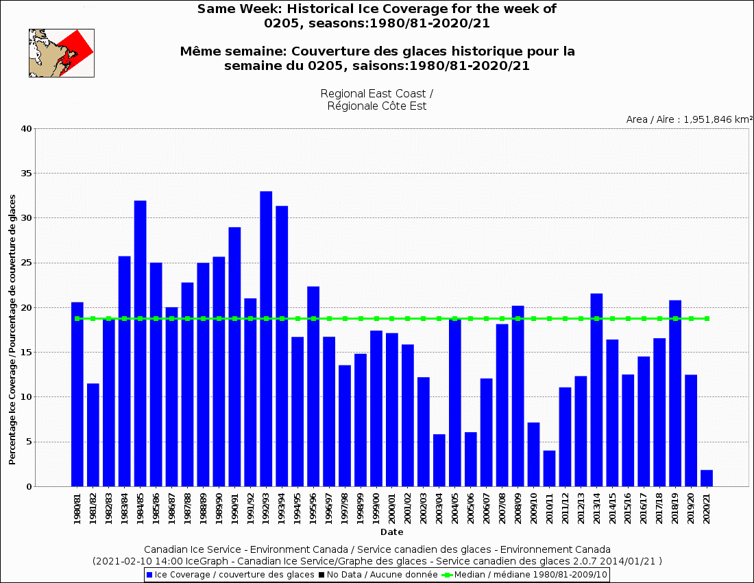 East Coast regional ice coverage history since 1981 for week of 5 Feb 2021 graph