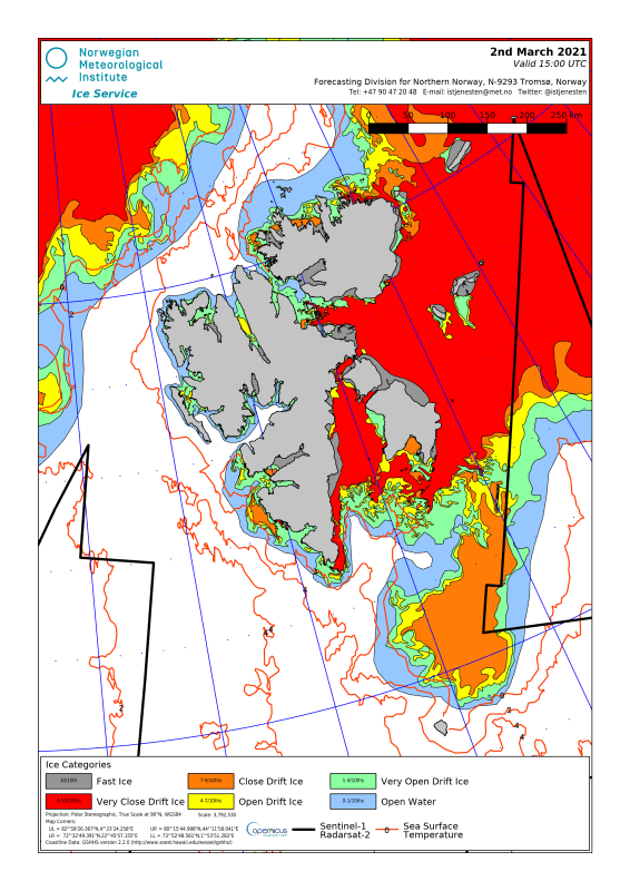 Svalbard sea ice extent 2021 March 2_NIS