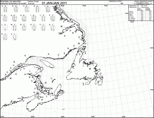 The worst year for low ice on the east coast in recent decades was in 2011 (Stenson et al. 2015), see below, for the week of 31 January: