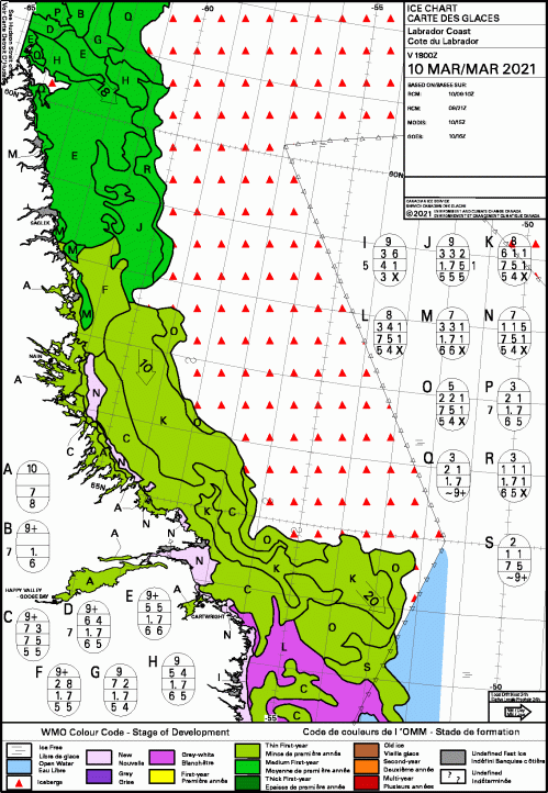 At 10 March, there is still much less ice than usual but it appears to be adequate at the Front (southern Labrador coast) for harp seals to have their pups.
