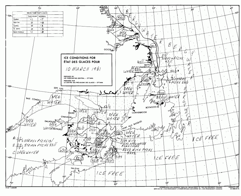 East coast ice stage of development weekly at 10 March 1981