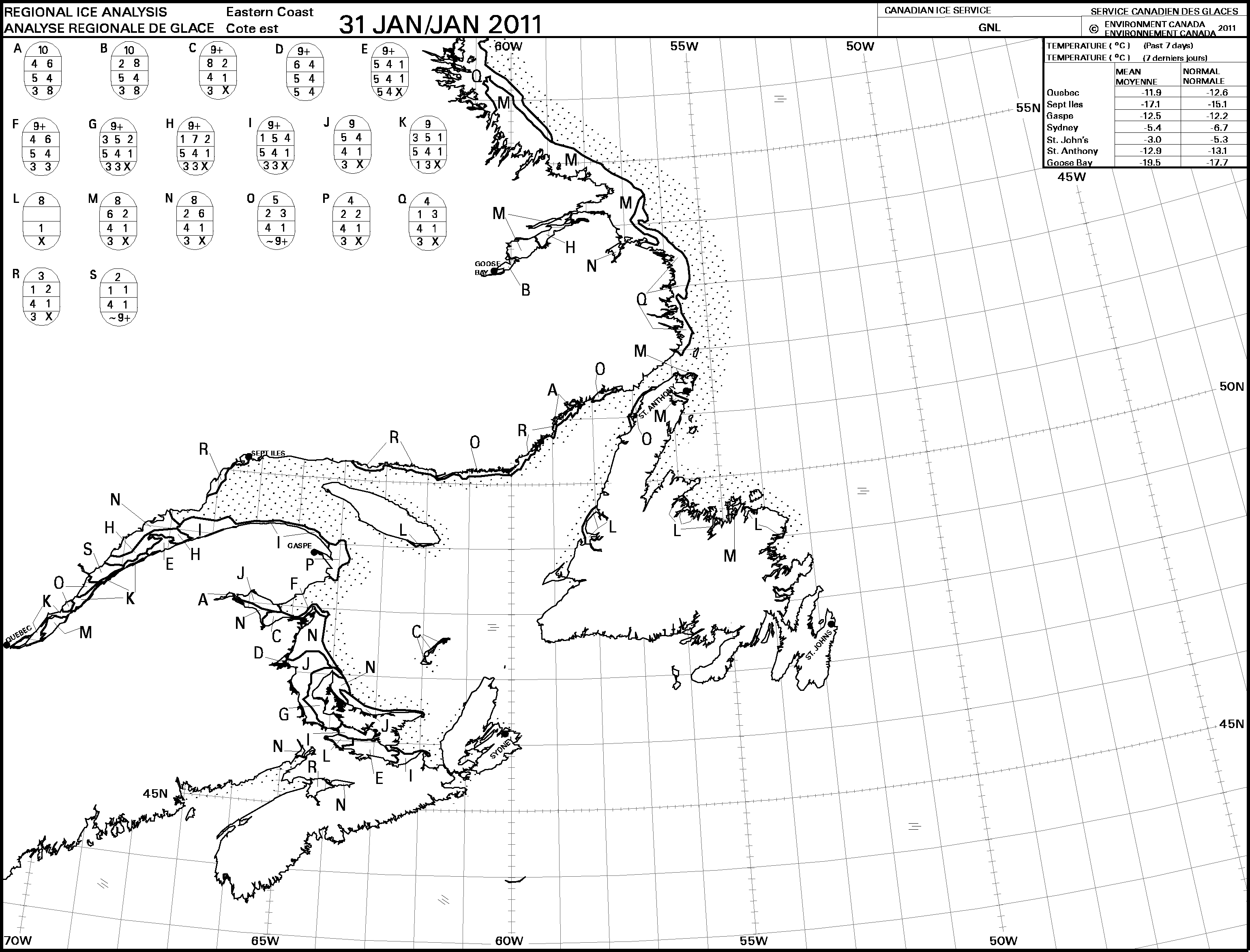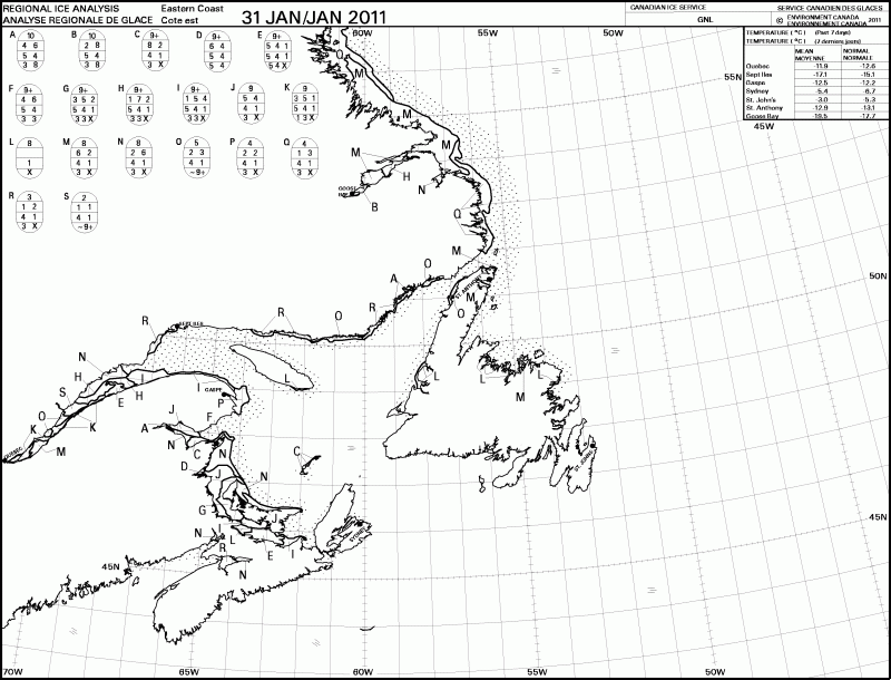 East coast ice stage of development weekly at 31 Jan 2011