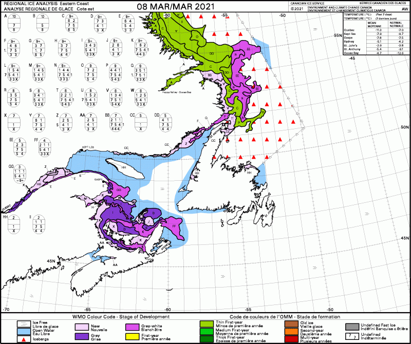 East Coast weekly stage of development 2021 March 8