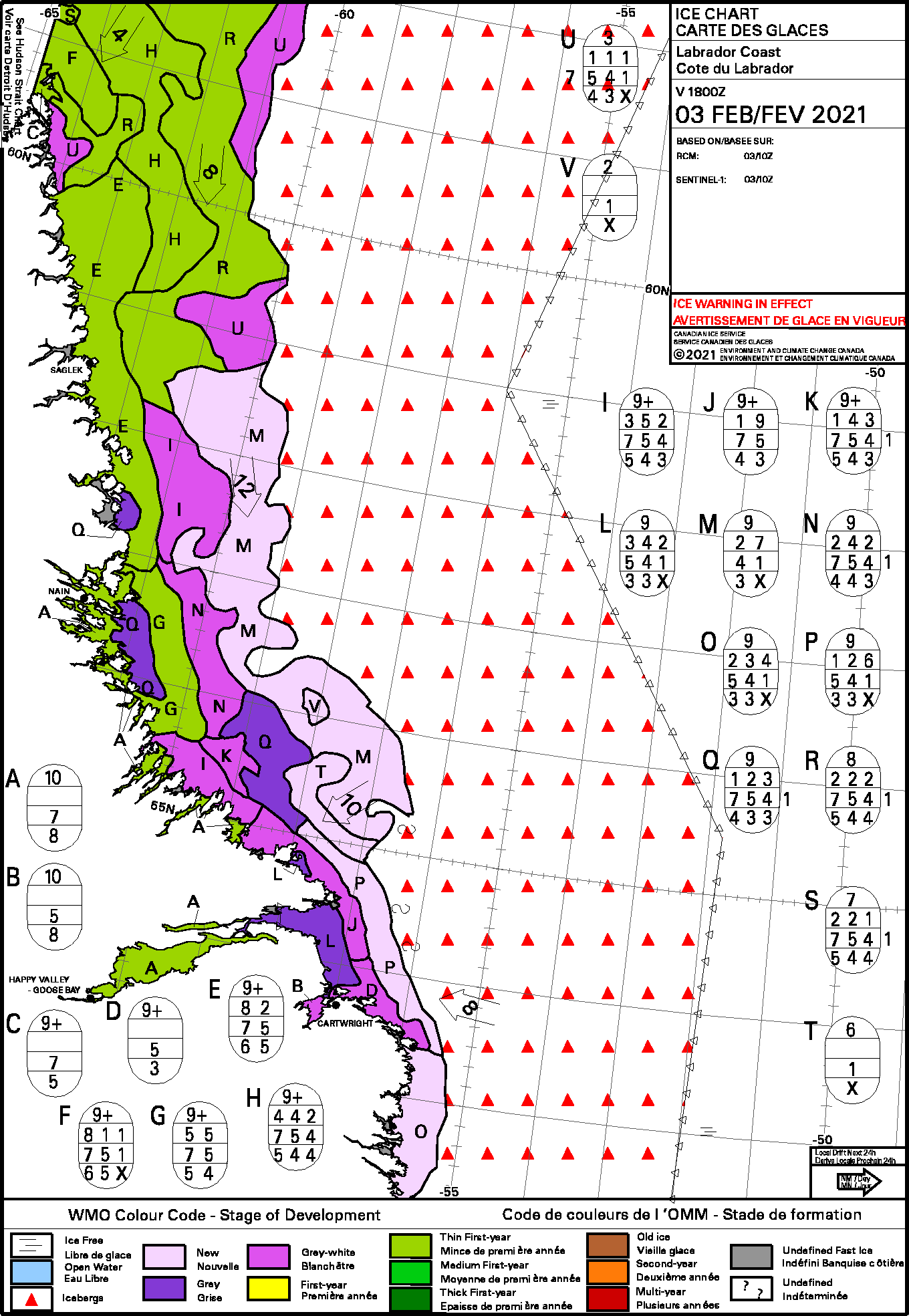 Labrador Coast daily stage of development 2021 Feb 3 ice warning