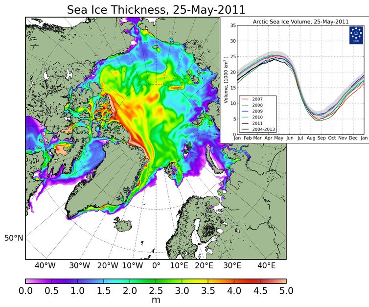Ice thickness over the last decade at 25 May (selected years to 2011, the earliest available)
