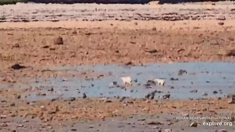Apparently two sets of mothers with one cub were spotted the same day (5 July) on the shore of Wapusk National Park just south of Churchill, captured by the Explore.org live cam (the photos are blurry because the camera is very far away from the beach):