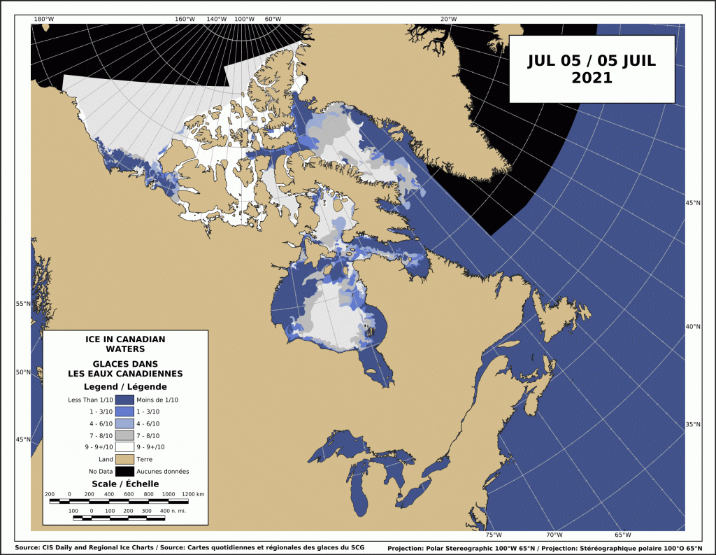 There is actually a lot more ice on the bay than shown in Derocher’s tracking map: see the chart from the Canadian Ice Service below: