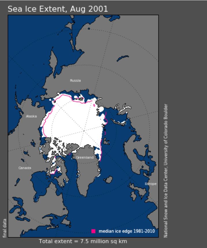 It wasn’t until 2001 that so much Chukchi Sea ice was routine at the end of August: