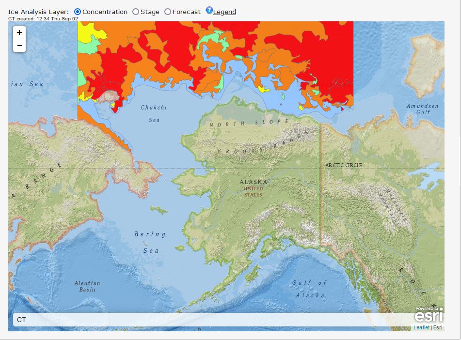 In 2019, there was virtually no ice left in the Chukchi Sea at the end of August: