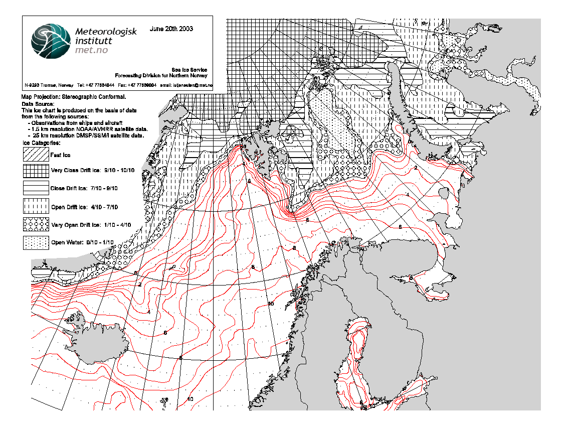 Ironically, 2003 was the worst year for male body condition at -0.415, a year when lack of summer sea ice was not an issue. A sea ice charts for mid-June in the Barents Sea that year (below) shows sea ice was still abundant after an extensive ice cover that winter, the highest it had been since 1999 (King et al. 2017).