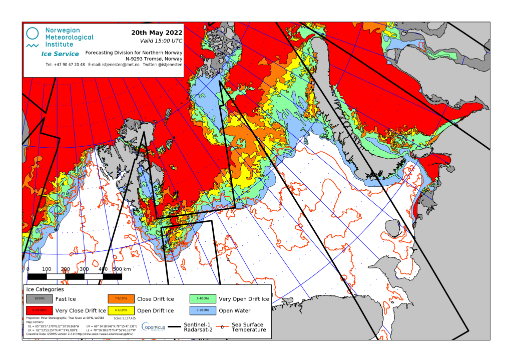 Mid-May is close to the end of the field season in the Barents Sea (and also the end of the intense feeding of polar bears on newborn seals as well as the end of the mating season), so these ice conditions are the most pertinent to recent polar bear body health metrics: