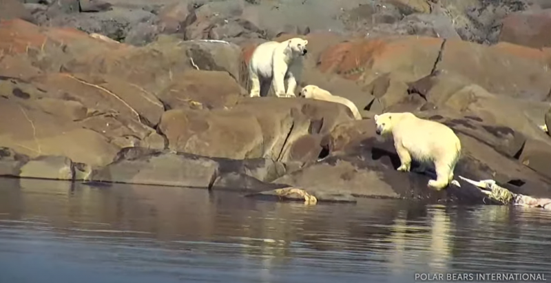 From the live cams installed on beluga tour boats running near the Churchill River, we have some good photos of a few fat polar bears onshore in Western Hudson Bay.