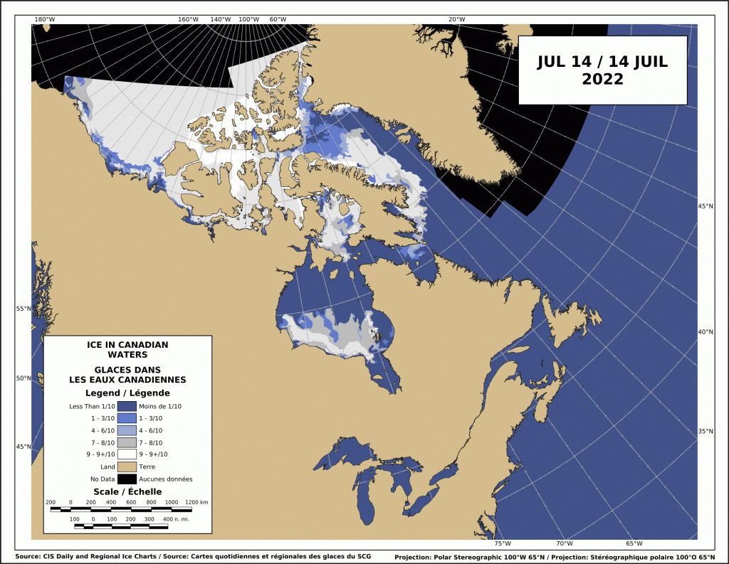 This post is predominantly sea ice charts for mid-July, what we in the science field call observational evidence, aka ‘facts’. Keep in mind that satellites used to produce these images have an especially hard time distinguishing ice topped with melt water from open water, which means much more ice useful to these marine mammals is almost certainly present than is shown in the charts (as much as 20% more in some regions).