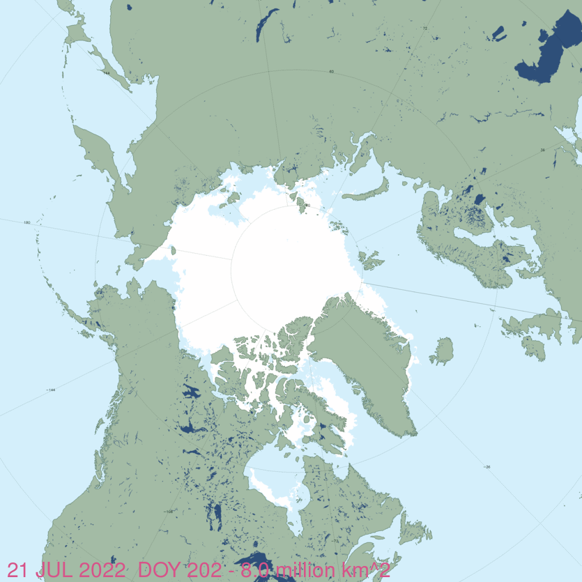 A few weeks into the Arctic summer (July-September), sea ice in the Beaufort and Chukchi Seas is dominated by thick, multi-year ice.