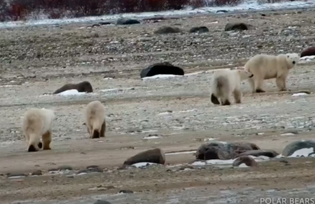 Polar bear triplet litter spotted near Churchill as ice starts to form along west coast of Hudson Bay