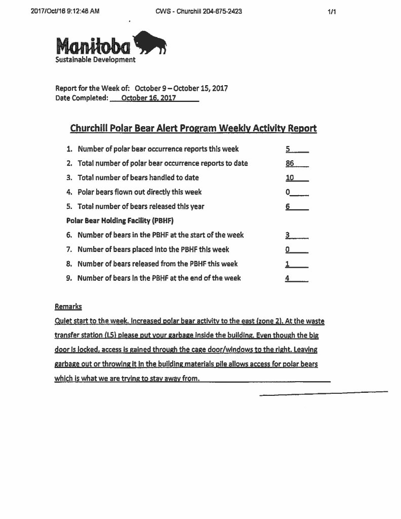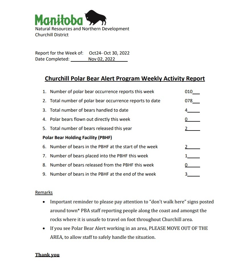 After 14 weeks onshore this year (24-30 October 2022), there have been relatively few problem bear issues (78 to date):