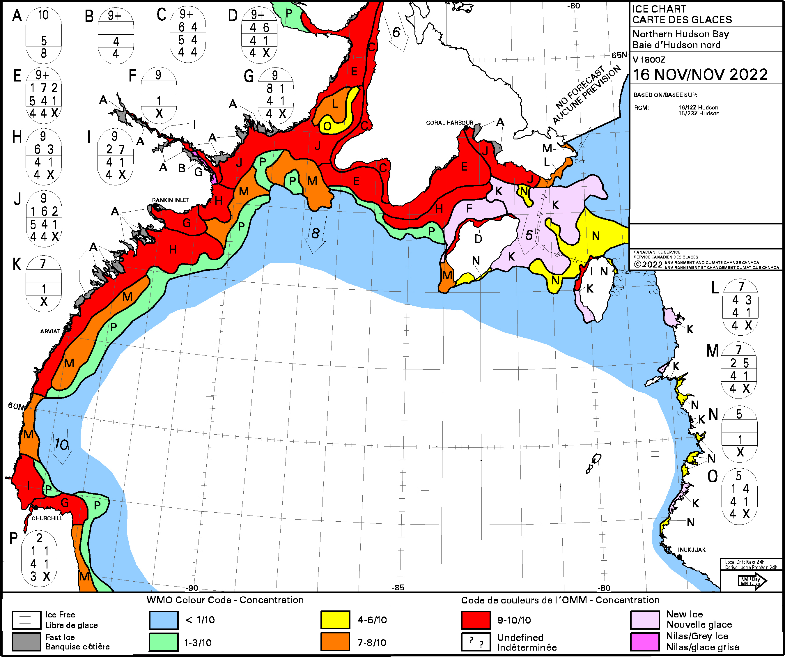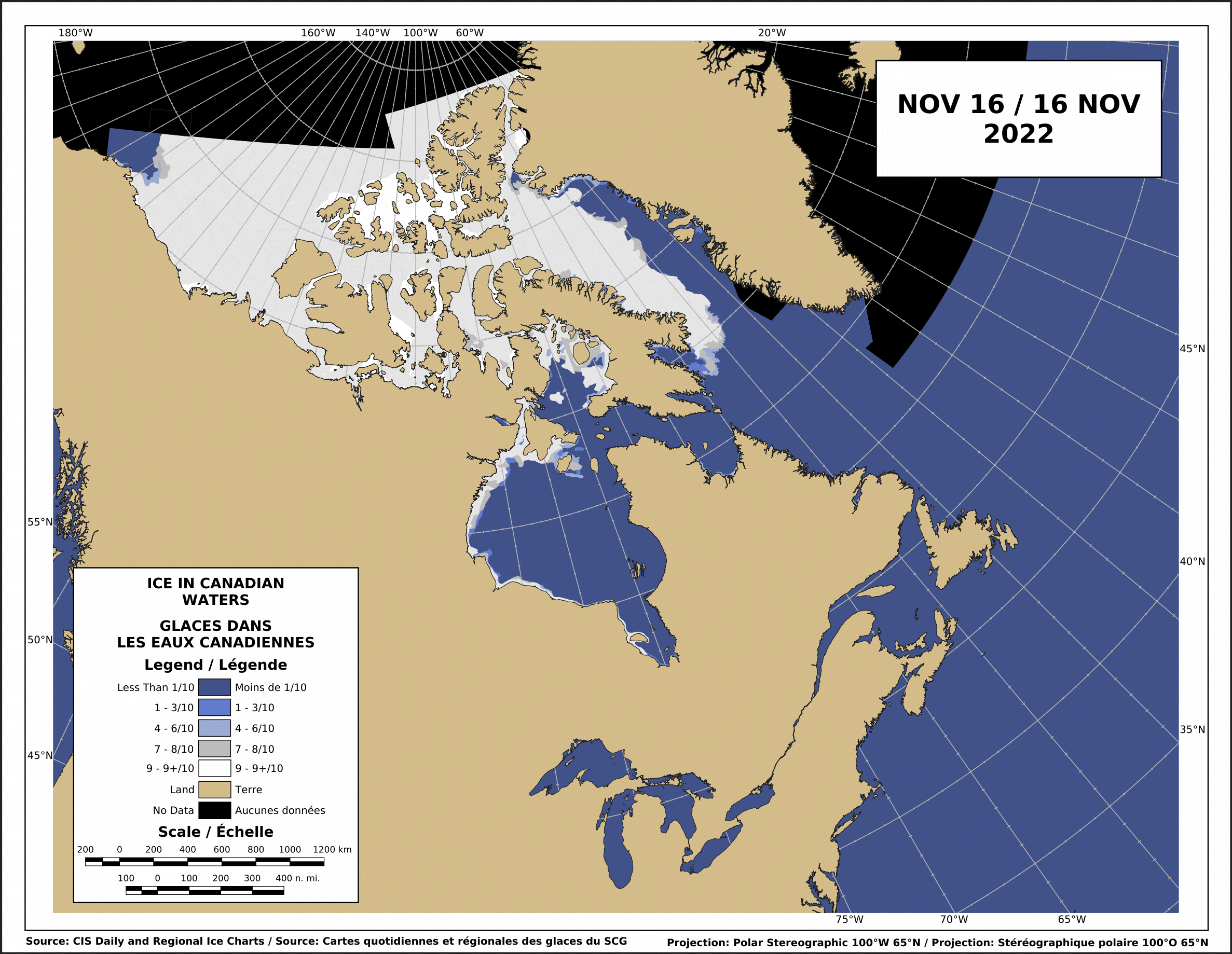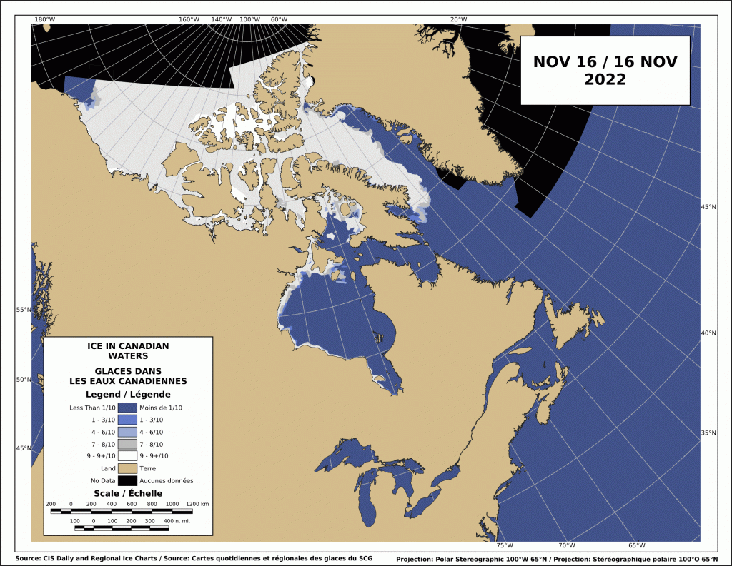 How that looks on the usual ice chart for Canada, 16 November 2022: