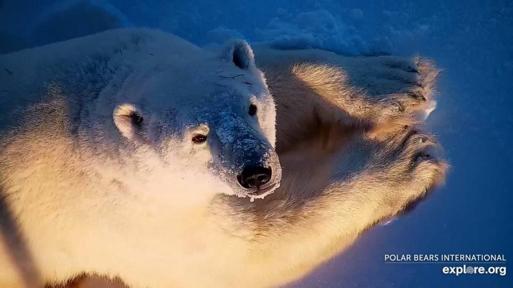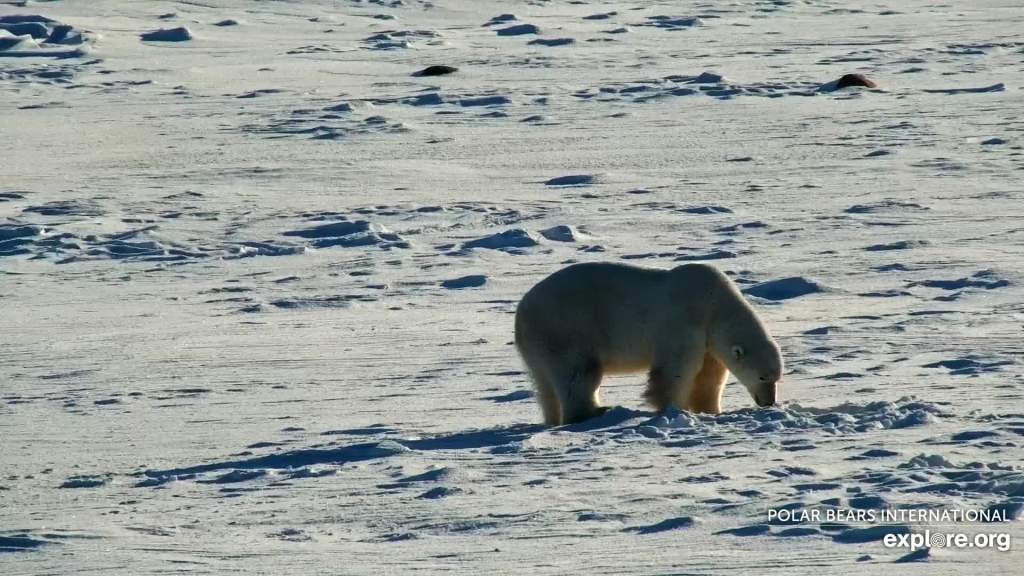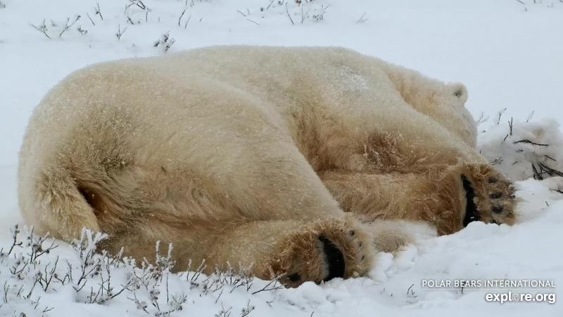 Some bears in good condition appear to be in no hurry to get out onto the ice, as the images below from 12-17 November on the shore of Wapusk National Park, courtesy Explore.org. This phenomenon seems to mirror the reluctance of some bears in early summer to leave the retreating ice even when there is very little left.
