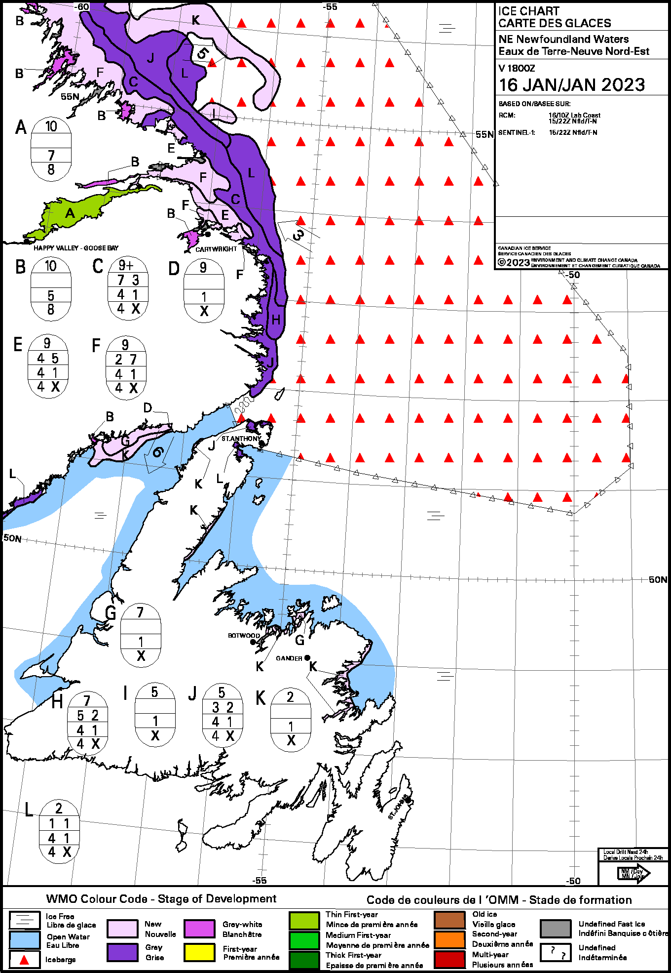 In the chart below, the pack ice from the north is green, the rest is newly-formed shorefast ice: