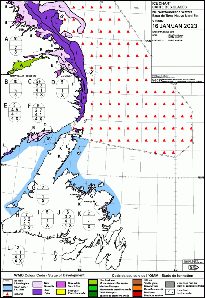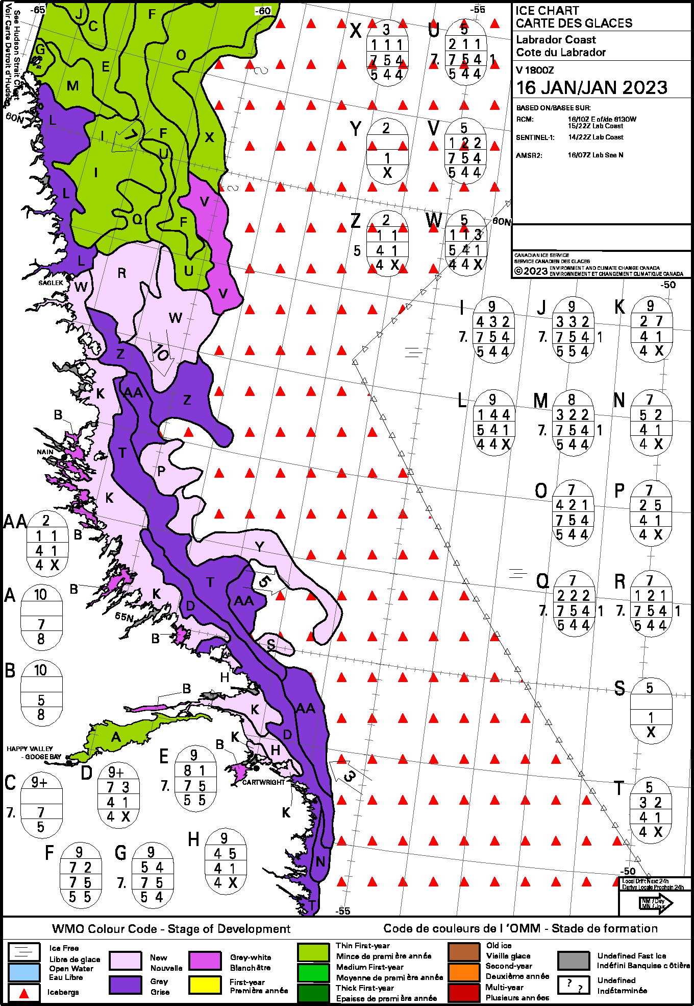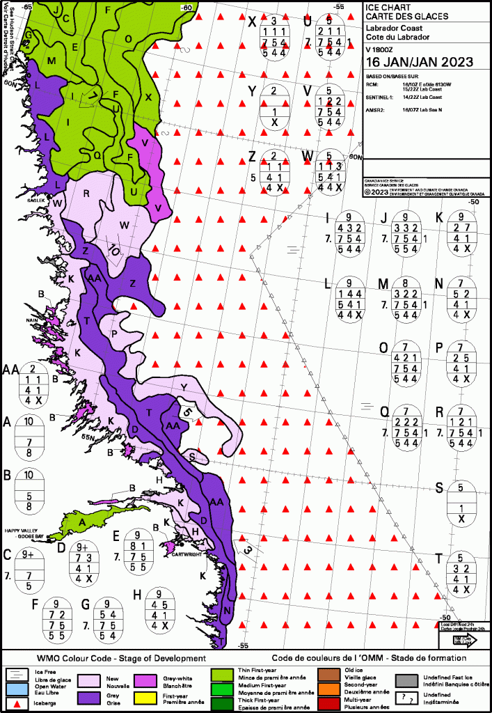 Davis Strait pack ice is now descending on the Labrador coast. Only slightly later than usual but it looks like there’s plenty of it.