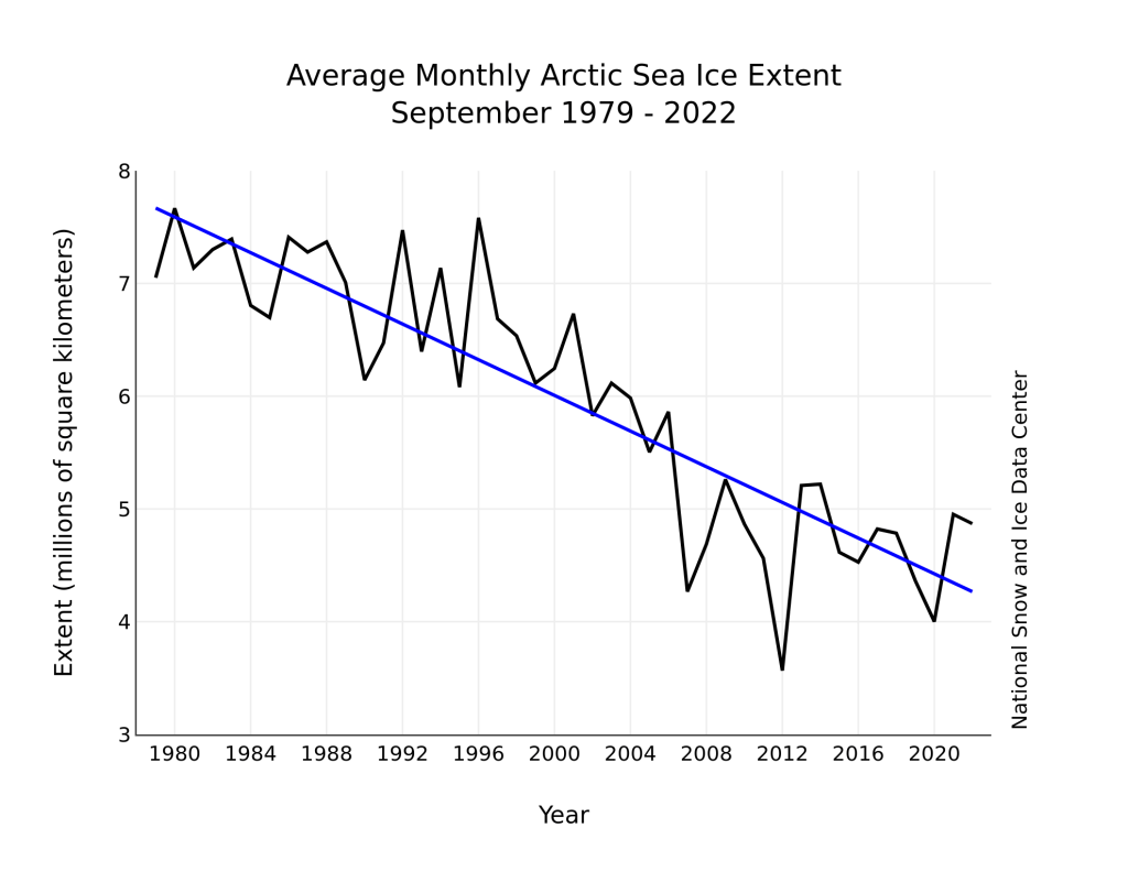 In 2012, NOAA sea ice experts summarized this sea ice loss as “reduced by nearly 50%” since 1979: