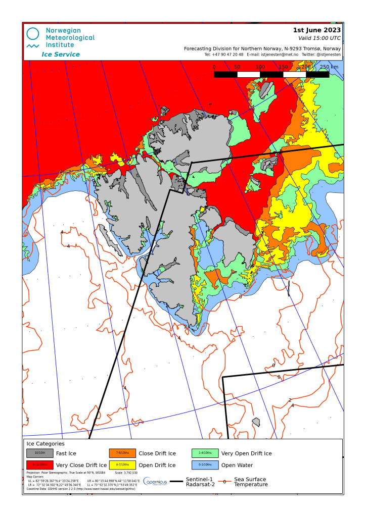 However, there is still abundant ice in the eastern and northern regions around Svalbard for polar bears to continue hunting attempts: